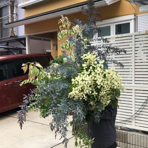 博多某所にてお庭の手入れ中。 ホンコンエンシスが綺麗だったので、剪定枝で花束作って遊んでました😉