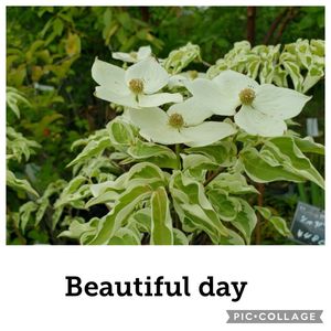 おはようございます😃 ヤマボウシ"ウルフアイ"です🌿🌿 ウルフアイ’は斑入り品種としては珍しく、強い日射しを受けても日焼けで葉が傷むことがなく、ずっと綺麗な状態が保たれます。 秋になると斑入りの白い部分が赤く色づいて綺麗に紅葉します。 2年前園芸店で撮りました♪ 今日も暑いです😵