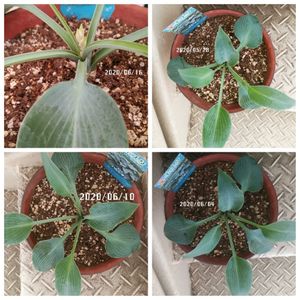 2020/05/28~2020/06/16 ホスタ“ハルシオン” 今年の春に購入してから、葉の数はあまり増えませんでしたが、花芽が上がって来ました~✨