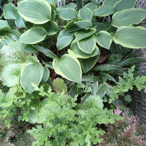 🍀ギボウシ2種類🍃 ユキノシタ🍃シダ?🍀 の寄植え 寄せ合ってうまく成長してくれています。