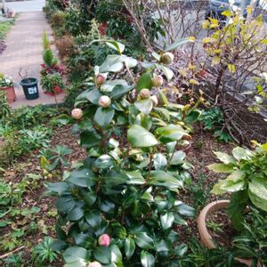 挿し木からの椿 まだまだ蕾を付けています🎶 花言葉 控えめな素晴らしさ