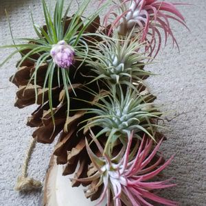 エアープランツ チランジアイオナンタ🍀です イオナンタの中でも、色々名前が あるようですが分かりません💦 小さな赤ちゃんなので 松ぼっくりの上に置いてみました🎶😊🍀