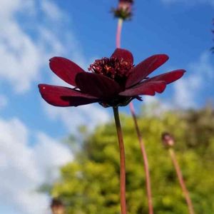 おはようございます😃 チョコレートコスモス🍫 なかなか株が大きくなりません☺️ ぽつりぽつりと咲いています✨ 可愛いお花です🎶