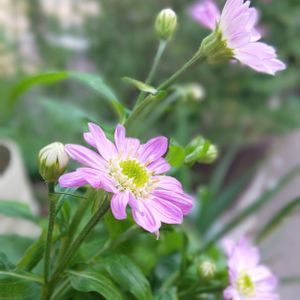 今年も都忘れ(ピンク)さんが咲き始めました🤗🥳 そして、 何年かかけて、パープル💜さんは、 とうとう滅亡してしまったようです😨😞 土のせい?ピンクに負けた?😂 機会あればまた投入しようと思います💜