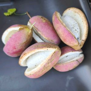 💚🩶💛フェイジョア💛🩶💚 乾燥フェイジョアスライスは、食べたことがありました。酸味が強く、それほど心惹かれませんでした。 先日、三女が見つけてきた生フェイジョア💛💚初見❗️初食❗️ 甘さと酸味のバランス、香りにめちゃハマりました!ビタミンCたっぷり❗️❗️私の新しい、秋🍂の味になりました💓 苗に出会ったらぜひGETしたい❗️