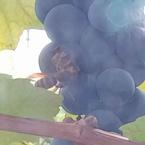 虫嫌いな人❌要注意 食堂の窓の外にブドウが植えてあります。 ブドウ目当てに沢山のスズメ蜂が来てます。 昨日トラップを取り付けましたが少なくとも4匹入りました。 🍇が甘くなってきたのでしょうね。 今年はだいぶ早そう!