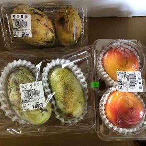 もう一件 ここは群馬県 道の駅 ららん藤岡です。 秋の味覚 ポポーと桃🍑 買って来ました。 つきかがみという2011年に新品種登録された黄桃との事