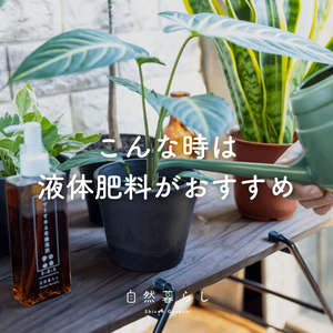 こんな時は液体肥料がおすすめ🚿 液体肥料は植物に対してすばやく栄養を与えることができる肥料です。 様々な植物にお使いいただけますが、植物の状態や生育の目的に合わせて固形の肥料と使い分けることが大切です。 💡液体肥料が適しているケース ✅定期的な栄養補給(追肥) ✅苗の成長初期や株の成長期に成長促進させたい時 ✅花や果実が次々にできて、株の体力が一時的に低下してしまう時 ✅葉面散布したい時:土壌中の根からの栄養の吸収が難しい場合(植え替え直後や暑さ寒さで根が弱っている時) 💡自然暮らしイチオシの液体肥料「水でうすめる有機液肥」 ワンプッシュして水1Lで希釈するだけ! 簡単便利で、日々の施肥が楽しくなる液体肥料です♪ 経済的な詰め替え用もございます! WEBでのご購入は 楽天市場、Amazon、公式サイトにて♪ ▽楽天市場 https://www.rakuten.co.jp/shizengurashi/ ※楽天はレビュー投稿で次回使える「500円OFF」クーポンプレゼント🎁 ▽Amazon https://www.amazon.co.jp/stores/%E8%87%AA%E7%84%B6%E6%9A%AE%E3%82%89%E3%81%97/%E3%83%9B%E3%83%BC%E3%83%A0%E3%83%9A%E3%83%BC%E3%82%B8/page/9063F911-F2E7-48B3-9E66-14D6E31F700B ▽公式サイトはコチラ🛫 https://shizengurashi.jp