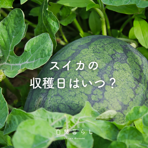 スイカの収穫日はいつ?🍉 4月に植え付けたスイカはそろそろ収穫時期♪ スイカは収穫タイミングが分かりにくいため、「受粉」してからの日数を目安に収穫しましょう🌱 💡スイカは受粉した日が分かっていれば、おおよその収穫日を予測することができます。 受粉日はメモやカレンダー、タグなどにしっかり記録しておきましょう。 ※逆に、受粉した日が分からない場合、収穫の見極めが難しくなります。 【受粉から収穫日までの目安】 大玉のスイカ…45~50日 小玉のスイカ…35~40日 スイカの畑・プランターでの育て方詳細はこちら! 《スイカの育て方|プランター栽培、肥料の与え方も解説》 https://shizengurashi.jp/blogs/method/watermelon