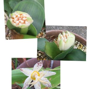 葉っぱ焦げ焦げシリーズ😅 マユハケオモト、葉っぱは短くなったけど、蕾が出て来ました。 そろそろ、植え替えてあげよう。 大好きなホトトギス 「天の川」 今週も植え替えを頑張ってまぁす。