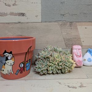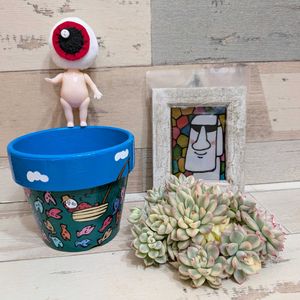 🙇売り切れました🙇 販売用です🎶No.2 えつこさんのモアイ鉢 3号鉢 ジョイスタロック錦 まつぴよさんが、保護猫募金の為に作ってくれました。 フクロウ🦉 お魚 第4種郵便速達にて発送予定です。 梱包後に送料込の金額を連絡させて頂きますね。 リメ鉢は、防水加工はしていますが、雨ざらしにはしないで下さいね。 水曜日の発送になります。 宜しくお願いします🙇
