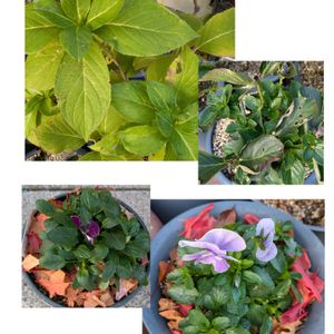 紫陽花の葉っぱが、全然落ちません。 まだ、夏だと思ってる❓️ ↓ビオラのマルチング ネットを見ていたら、落ち葉を洗って乾燥させて手でちぎって入れてた。 マルチング材、買わなくて良くなったよ〜😆