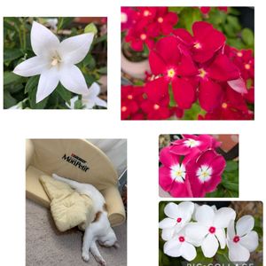 台風が来そうです🌀 メダカだけは、守らないと💪 日々草が、毎日咲いてくれます。 白の桔梗も、長い間咲くので助かりますね。 ↙ヴィーラ君 くつろぎ過ぎですねぇ😁