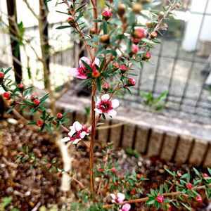 ドワーフレッドティーツリー 秋に寄せ植えに入れ、一度は水切れさせてしまい葉がチリチリになり、もう一度挑戦してようやく花が咲きました✨ 膨らんでいくつぼみを今か今かと待ちながら、3月の頭にひとつまたひとつと咲いていき、ここまでお花が💕 普段は開花したポッド苗を購入して寄せ植えにしていくけれど、時間をかけて育てていくのはまた違った楽しさと喜びが味わえますね この寄せ植えにはムスカリの球根を仕込んであって、それも芽が出てついに咲いたのでいっそう嬉しい✨