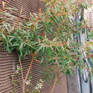 レモンティーツリー (ギョリュウバイ) 白いお花が咲きました 冬は葉っぱがもっと赤くなる 葉っぱ握るといい香り~✨