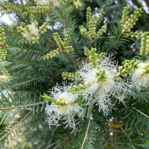 ティーツリー(メラレウカ) かな? 近所のお宅に植わっている他であまりみない樹木