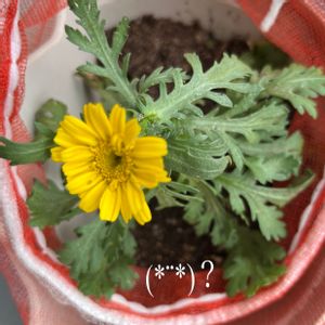春菊の葉がモサモサ出てきますように。 お花は切った方がいいと教えて頂きました(* . .)))😊🙏🌟