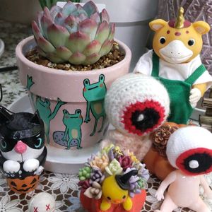 本日、忘れ物多く連投です🤗💕 🏷️オヤジ祭り2025 みたりんさんのリメ鉢に、可愛いマディバさん。 背景は、みたりんさんのブースカくんのカッティングボード✌️ さわさんのSNOOPYのピック可愛い💕 みんな集まって、ワイワイ‼️ 繋がりに感謝です🤗