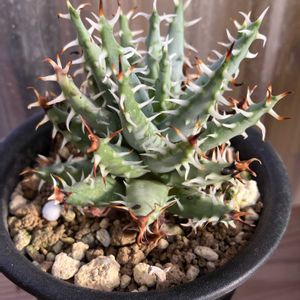 室内組のトゲトゲ pic② Aloe melanacantha ssp./var. erinacea アロエ・メラナカンサ エリナケア お水をあげたらふっくらしてきました⤴︎ ⤴︎ (前回pic'23年12月7日) 新芽の乳白色の棘が、産まれたてで柔らかそう👶🏻 pic③ Aloe aristata アロエ アリスタータ 強鋸歯 綾錦 冬の間、水を切ったので痩せてますが、 ノコギリの様な歯は健在! カッコイイ😎✨ pic④ Aloe juvenna アロエ ジュベンナ 翡翠殿 寒さに強い子なんですが、 変な色に紅葉しちゃったので室内組に! 茎の近くにその色が残ってます💦 ただ少し徒長しちゃった😣 子株は元気👶🏻 pic⑤ Deuterocohnia brevifolia ssp. chlorantha デウテロコニア ブレビフォリア ssp. クロランサ 葉が綺麗な色になってきた🌱✨ アロエと違って、この子の棘は刺さると痛い🤕🩹 🏷勝手に7日は爪エッジ棘の日 参加させていただきます(⋆ᴗ͈ˬᴗ͈)”