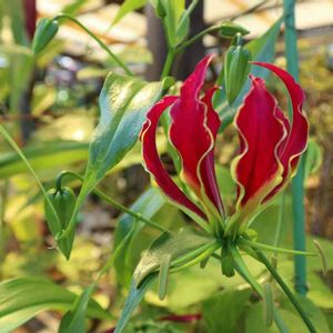 グロリオサ、 咲きましたよ🌺 落下傘からヘリコプター🚁へと⤴️