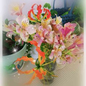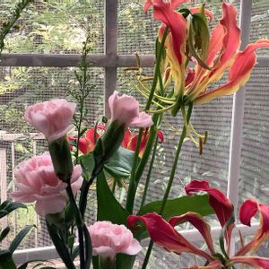 色合いがとても可愛いくて💖 しかも動きあってキュン❤️ グロリオサさんとアルストロメリアさん💕 今日も一日心地好く🥰✨✨✨