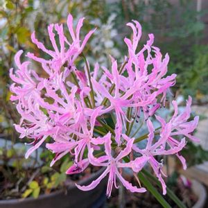 おはようございます🌅 今日のお花ネリネ🌿🩷🌿 ヒガンバナ科ネリネ属🌿 南アフリカ原産の球根植物 別名-ダイヤモンドリリー🩷 光が当たると花弁が宝石のようにキラキラと輝くのが由来だそう💡 ①お花はヒガンバナより小さ目ですが ②1輪ずつの形は良く 似ています🌿🩷🌿 ③「葉しらず」「花しらず」と呼ばれるヒガンバナと違い🩷お花が咲く時にも葉っぱが有ります🌿 ④草丈は成長すると30~60cmほど ⑤鮮やかなピンクのヒガンバナって感じ✨🩷✨ 🏷️木曜日モフモフ 🏷️愛の花♡ ①④⑤いつもの散歩道で🌅 ②③いつもの森林公園で🏞️2024.12.16