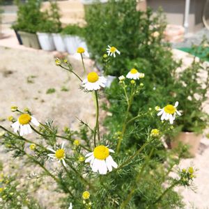 ジャーマンカモミールの花が 咲き始めました💚🤍💚 ローマンカモミールとかと違って こんもりとした丸い黄色のとこが 目的なので花びらはこんな感じになるけど、でも、まるまるとしてて 可愛い💛💛💛 長女の希望で、食べられる使える植物 ばっかりのお庭なのであまり薬剤も 使えず……。毎日虫さんたちとも むっちゃ関わってます😂 長女はおしゃべりで虫達ともお花達とも人間と変わらず話し続ける🤣 ある意味凄い✨✨✨