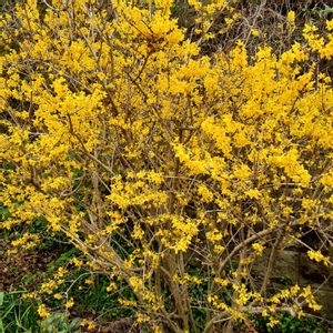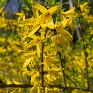 今、レンギョウ(連翹)が満開です。 黄色い四弁花を咲かせるモクセイ科の花です💛✨ 黄色い色🟡がきれいで、よく目立ちます💕😃