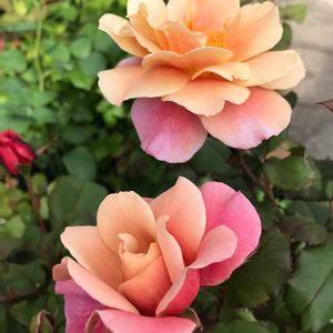ディスタントドラムス この前見た夕焼けの色をしています💗🧡💛 写真は瞬間なので、時が止まって見えますが、潮風でとっても揺れています。 刻々と変わる色彩が、このバラの魅力です♡