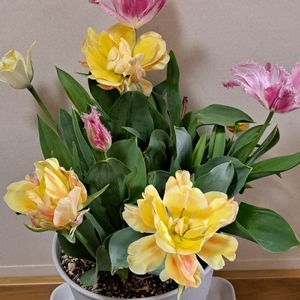 何年ぶりかで植えたチューリップ🌷 風でぶっ倒れてたのが少し立って来たぁ~🌷 でもなぁ😵😣 植えた球根覚えて無いけど,もっとカラフルに沢山の球根植えたつもりやねんけど😂 二種類だけや❗🌷 部屋に入れて🤳したった😃🎶 腐ってるのも何本か出て来た😱 🏷️しゃあないわ😅 咲いてくれただけでも嬉しい😃🎶