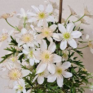クレマチス カートマニージョー🤍 昨日お持ち帰りしてきた子の1つ~❣️ ポツンと1つ残ってた子🤍 即🛒に…。 可愛い🤍 今から昨日の子達と薔薇🌹の植え替え開始~👍️ さぁ❗ 頑張るぞぉ~😆💪