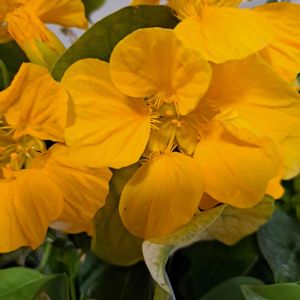 ナスタチュウム💛 クレマチスが欲しくて出掛けたのに🚗💨 先週は見たのに今日は置いてなかった💧 来年迄我慢するわ😣 この子は玄関の窓にぶら下げようと2ポット連れて帰って来たぁ😁 風が強いから心配やけど…😓 🏷️しゃあないわ🤣 置くとこ無いもん😁🎶