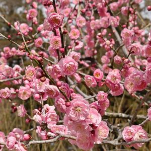 2月5日撮影 小石川植物園 ますます、花の形がわからない写真になってしまいました😅 もっとアップで撮ったものもあったのですが、ピントが合っていませんでした😆 これは豊後系と呼ばれるアンズとの雑種性が強い種で、花梅だけでなく実梅にも当てはまる…とありました。 (どういうことかな???実梅は豊後系が多いということ?) 豊後系は豊後性と杏性に分けられます。 「豊後性(ぶんごしょう)」に属する花梅は、アンズとの雑種性の強い梅です。花は大輪で淡紅色のピンク色が多く遅咲きですが、花の香りはそれほど高くないです。 「杏性(あんずしょう)」に属する花梅は、豊後性によく似ますが、それよりも枝が細く葉も小さいです。葉面に毛はなく、枝の色は灰褐色をしており、花の香りはそれほど高くなく、遅咲きが多いです。 (梅の剪定ナビ より) ウメ(梅「未開紅」) バラ科サクラ属 豊後系、豊後性、八重咲き あれ? 〝梅の剪定ナビ〟やMKタクシーによる〝MKメディア〟では豊後系豊後性とありましたが 〝ウメの園芸品種図鑑〟では野梅系野梅性とありました! どちらが本当なのでしょう???