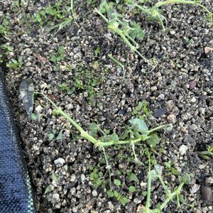 野菜遺産 草むしりとか砂利片付けとかしてたら、大発見‼️ 暖冬で冬越し期待して、大寒波と強風でカリカリに枯れて諦めて、今日の大発見に大喜び🤩 美笹豌豆🫛が冬越ししてるぅーーー😆嬉しい❣️ じょうでき牛蒡の葉っぱも出てた❣️ 嬉しい発見でした✨ 春休み終わったと思ったら、桜の開花で花見に連れて行けとか言われて、ガーデニングはまた来週に延期か😅
