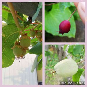 可愛いベビー達❗️ 先日交配したキィーウィーが結実してもう少し大きくなりました🎵😀 たった1つのジューンベリー❗️ 甘い‼️💕 リンゴ🍎も今年初めて大きくなりました❗️ 食べられるようになるかな🎵😃🎶 どれも楽しみです😂