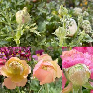 *❀・ ⬆️ふたつの花芽は3年め 下のは迎えたラナンキュラス もうふたつ目の蕾が花開こうと… メメメΣ(●´д`●)メチャカワァー💕💕