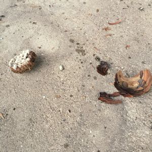 ⚠️⚠️⚠️⚠️出た⚠️⚠️⚠️⚠️ 💥スズメバチ💥 不動産屋からの依頼で空き家の管理をしてきました❗ 少なくとも一年以上は空いてる状態…💦 経験上、人気の無い草木がボサボサの民家はスズメバチの居住率が高い❗ 案の定、ありました💥 高さ1.5メートルの生け垣のカナメモチ(レッドロビン) の中に(*_*) 突撃兵が出て来て「これ以上近づくんじゃねぇ❗」と示威行動🐝💥 臆することなく(笑)スズメバチ用の殺虫剤で攻撃⚠️ 巣から30~40匹のスズメバチが一目散に飛び去って行きました(´д`|||)さすがにびっくりして逃げましたけど💧 …ハンドボールサイズの巣が取れました💦 毎年5~6個くらい退治してますけど、このサイズは初めてです😣 この季節の空き家は怖い‼️ スズメバチの巣のデザインは嫌いじゃないです(笑)