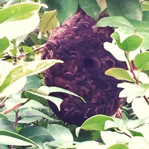 こんばんはー うちの3㍍越えオリーブに 渦巻き模様の スズメバチの巣が😱 オリーブの木を 切っていて 最後に枝を落とそうと 揺らしたら 一気にブ~ンと🐝 気が付かずに 終わる所でした 駆除業者さんも 完全防御で来るのかと 思っていましたが 半袖の軍手すらなし~ 刺されないー スズメバチハンターです びっくりです😨 区役所で無料で駆除 感謝 感謝ですヽ(*´▽)ノ♪ 誰も刺されなくて良かった ホッとしました🙏 今年は多いようです お気をつけ下さいませ❤️