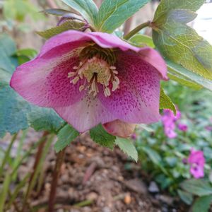本日2pic目です😊 【クリスマスローズ】 嬉しいことは続きますね❗ この子は種蒔きっ子さんです😊 実はこの子の親はもう☆になってしまっているのです❗ 昨日、この子が開花した時、子供が残っていると思っていなかったので、大興奮ですよ‼️🤩 わ~良かった! 絶えなかった! ほんとに嬉しいです😆🎶 長めの茎と短めの花弁でコロンとしてて、アプリコットもちょっと入っているようピンクとみどりのお色です。 また種を採っておこうと思いました~😂(開花した最初の年じゃ可愛そうかな??) 後ろにちらっと見えるメラコイデス(白&濃いピンク)見切り品をお迎えした子なんですが、ウインティーより元気です🤭あら~??