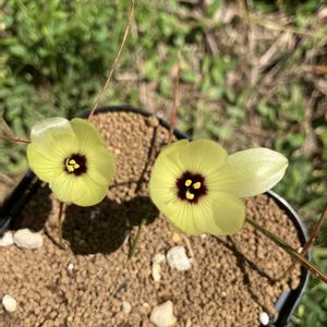 まだ小さいけどゲイソリザ・ダーリンゲンシスが咲きました 光沢のあるレモンキャンディな感じです🍬