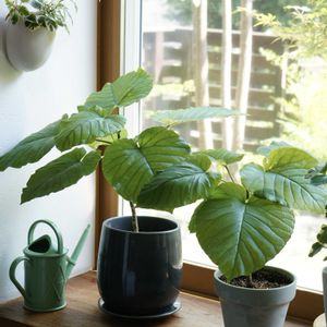 夏の剪定後のウンベラータ🌱 まだまだ昼間は暑いけど、朝晩は冷えるので部屋に入れてる。水あげる時は出してあげると元気になる😀