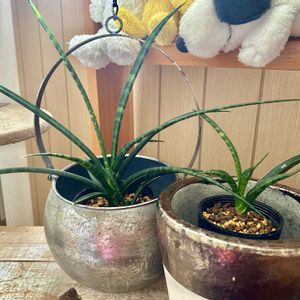 ☀️お日さま浴びて気持ち良さそうです。 1️⃣ サンセベリア 左:おかあさん 右:こども 今朝 親離れしました🤗 2️⃣ ウンビラティコラ 2年半も経つのに か弱い姿です🙃 3️⃣ ウンベラータの挿し木 水耕栽培で ヒゲが伸びたので きのう 土に入れました😊