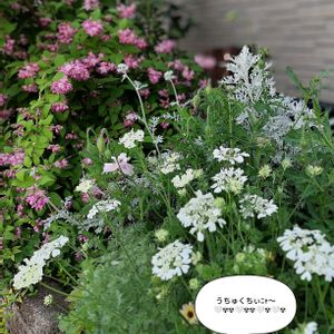 西 出窓下 半円花壇 今朝の様子 こぼれ種からの オルレアお嬢様❁🤍が 良い感じ〜 ②名前いれてます。 今年1番のお気に入りは やっと出会えた 「✾💛🧡カレンデュラ🧡💛✾」 2株お連れすればよかった 3株でも………🤭 この手前には、まだ咲いてない グレープセンセーション❁ワイン色が モリモリになってます…😅