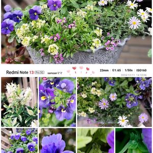 11/5頃作った寄せ植え およそ1ヶ月 暫くお花がお休みしてた、 ❁💜薔薇咲きバコパスコーピア💜❁が 咲きだし ちょっと見頃に(ポット奥) ③パンジーミニフリフリ2種 よ~く似てるけど ちょっと違うよ🤗🥰