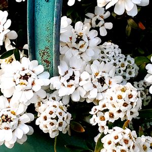 ❁︎寄せ植えの中より❁︎ 取っ手付きバスケット型の鉢植え スゥィートアリッサム 宿根イベリス ブライダルブーケ 真っ白(( *ˊᗜˋ* )ゞデス!!