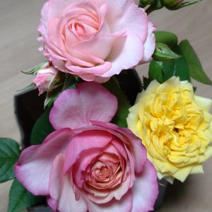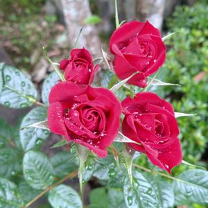 🏷水滴の水曜日 参加します💕 昨日は🏷火曜日は花謡曲を添えて♪ たくさん😊ありがとうございましたm(_ _)m💕 これからも宜しくお願いします💕 この娘は鉢植えのミニバラさんです🌹 ちょうど雨が降り注ぐ場所に置いているので😂しっとりしていました😊 去年は黒星病にやられてまだまだ完治しておりませんが頑張って咲いています😊