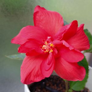 hiroさん😂😂😂😂😂😂 咲いたよ〰〰〰〰〰🌺🙌 去年カット✄された娘を挿していて😊キッチンで冬越し😅 根が出たようなので定植🤗 以前に蕾が付いたのを報告しましたが、✄するするって言いながら😅 お花を見たいばっかりにそのままに😂 今朝咲いていました😆😆😆😆😆 🏷真っ赤な火曜日