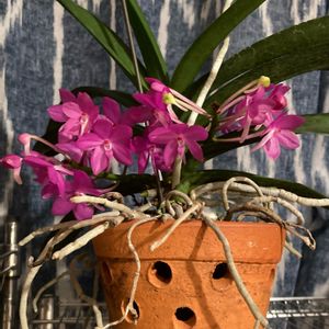 3月にやまはる園芸さんのらんクジで頂いたバンダのプチブーケが開花しました🌸 今年は咲かないかもと聞いていたので嬉しい……! バンダは手持ちのランの中だとぶっちぎりで難しいです💦 元は3株いたんですが、花後の管理をトチって1株根腐れで天に召されました( ͒ ́ඉ .̫ ඉ ̀ ͒) このぴょんぴょんの葉っぱが好きなのでなんとか維持を安定させたいところ、長生きしてね〜!