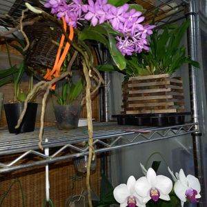 昨年は、たぶんアザミウマのせいで、フウラン系の花芽が全滅してしまったので花が見れなかったけど、今年は順調に花芽が育ってる。 こちらは1週間前くらいから咲き始めた バンダ プチブーケ Vanda Petit Bouquet W.W.G.Moir 1965年登録 (以前はAscocentrum属とNeofinetia属の属間交配種としてAscofinetia Petit Bouquetという名が使われていたけど、両属ともVanda属に統合されたので現在はVanda Petit Bouquet ) ……と、これまでは呼んでたんだけど、プチブーケなのかどうか、ホントに自信がなくなった。 プチブーケは、フウランとバンダ アンプラセアの一次交配種であるバンダ チェリーブロッサム(Vanda Cherry Blossom, E.Iwanaga 1961登録)に、アンプラセアを掛け戻した戻し交配種で、本来ならプチブーケはチェリーブロッサムよりアンプラセア寄りの姿をしている……はずなんだけど、ここ数年、画像検索してみると、うちのプチブーケそっくりのチェリーブロッサムや、それよりももっとアンプラセア似のチェリーブロッサムが沢山検索結果に上がってくるようになった。 しかもプチブーケの方も、よりアンプラセア寄りの個体が出てて、もはやアンプラセアじゃないの?ってのもある。 つまり、チェリーブロッサムもプチブーケも、今は色や形のバリエーションがすごく増えていて、単にラベルのつけ間違いじゃなくて、新しい個体(品種)がどんどん作られて、両者の区別が付き辛くなってるようにも見える。でも、ホントにそんなに頻繁に新交配が行われてるの?って気もする。 そんなわけで、うちのプチブーケはプチブーケなのかチェリーブロッサムなのか全く分からなくなりました。 昔はチェリーブロッサムと言えばピンクのフウランみたいなのしか見なかったような気がするんだけどね…。