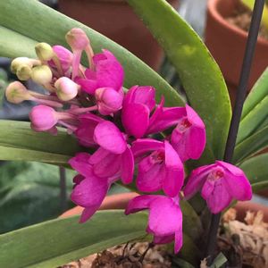 バンダ プチブーケが満開になりました。花茎がうなだれていたので、ドキドキしながら持ち上げました。早くしてあげればよかった